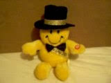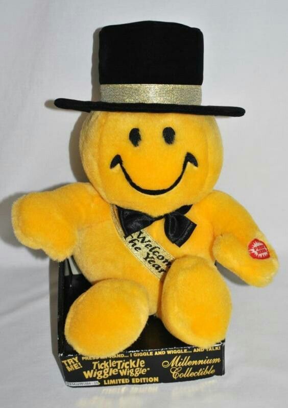 Apparently it's called the "Tickle Tickle Wiggle Wiggle Millennium Collectible" (That's one increadibly LONG name!!). It's so silly and i LOVE it so MUCH, something thats kinda terrifying about this goober however is that it has some sorta electrical voicebox of sorts that recites a scary count down whenever you shake it's hand! Besides that tho I LOVE IT TO DEATH!!!!!